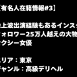 【有名人在籍情報#3】地上波出演経験もあるインスタフォロワー25万人越えの大物セクシー女優【東京・高級デリヘル】