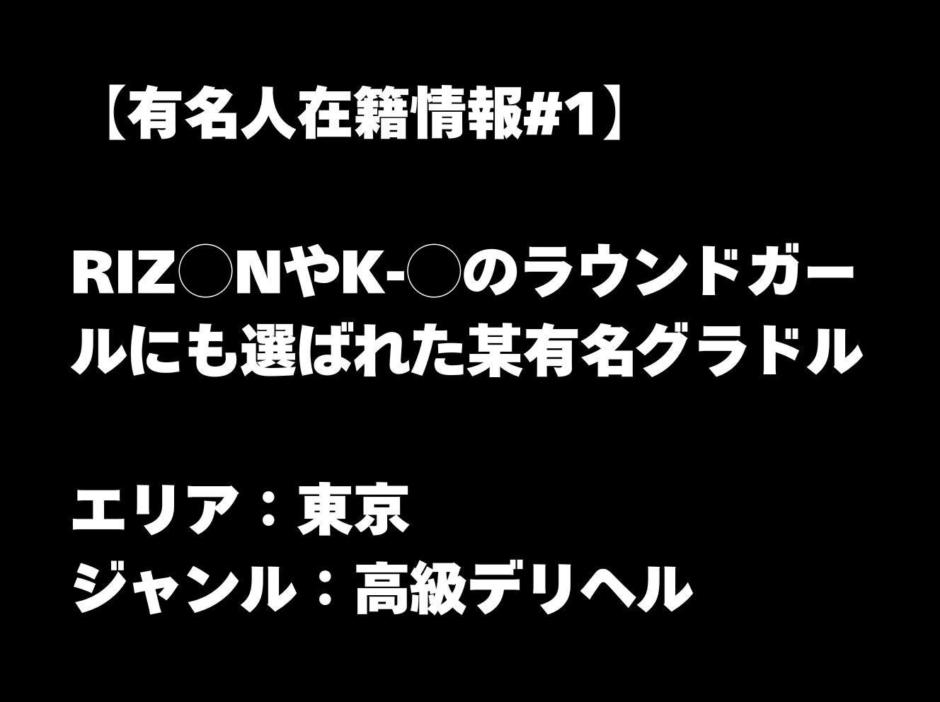 >【有名人在籍情報#1】RIZ◯NやK-◯のラウンドガールにも選ばれた某有名グラドル【東京・高級デリヘル】の購入はこちら