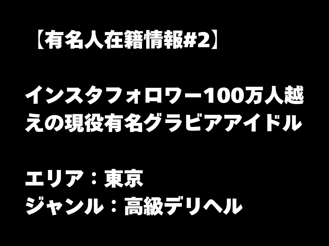>【有名人在籍情報#2】インスタフォロワー100万人越えの現役有名グラビアアイドル【東京・高級デリヘル】
