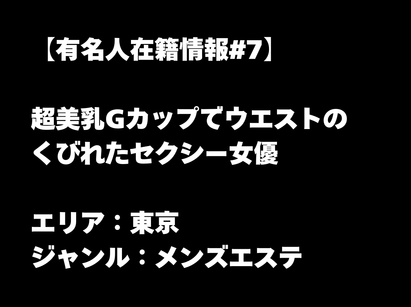 >【有名人在籍情報#7】超美乳Gカップでウエストのくびれたセクシー女優【東京・メンズエステ】
